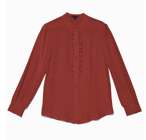 NEW ! Merlot -Gayle Ruffle Shirt in silk